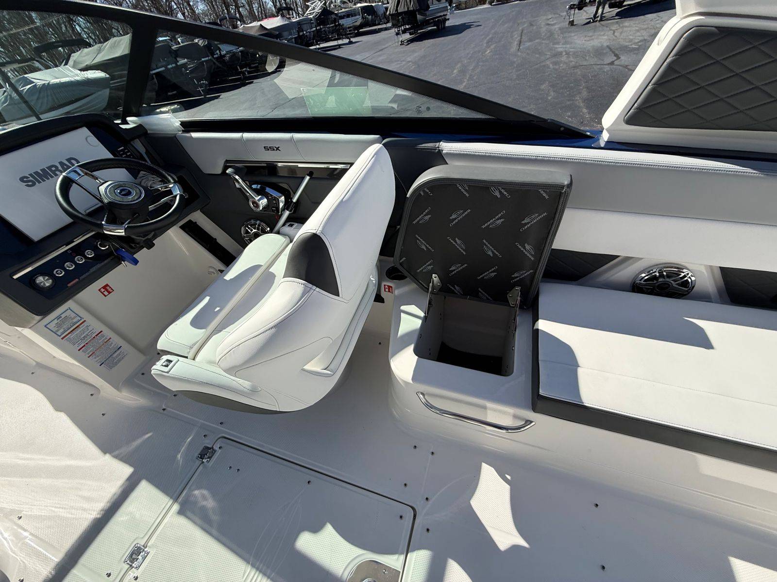 The 2026 Chaparral 30 SSX is a luxury bowrider that combines high performance with superior comfort and style. This model showcases Chaparral's innovative design, featuring a spacious layout that accommodates a variety of activities, from water sports to leisurely cruising. Equipped with the latest technology and powerful engine options, the 30 SSX promises exhilarating speed and excellent handling. Premium materials and finishes are evident throughout, from the plush seating to the intuitive helm station, ensuring a refined boating experience. With ample storage, a well-appointed cockpit, and thoughtful amenities, the 2026 Chaparral 30 SSX caters to both adventurous outings and relaxed gatherings on the water.