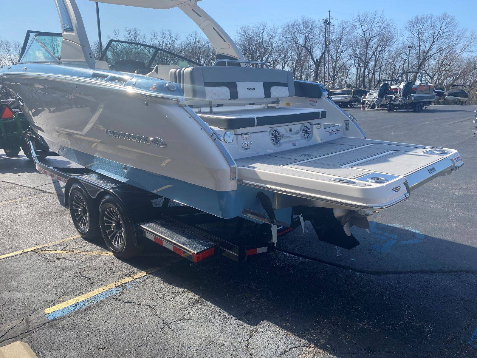 The 2026 Chaparral 30 SSX is a luxury bowrider that combines high performance with superior comfort and style. This model showcases Chaparral's innovative design, featuring a spacious layout that accommodates a variety of activities, from water sports to leisurely cruising. Equipped with the latest technology and powerful engine options, the 30 SSX promises exhilarating speed and excellent handling. Premium materials and finishes are evident throughout, from the plush seating to the intuitive helm station, ensuring a refined boating experience. With ample storage, a well-appointed cockpit, and thoughtful amenities, the 2026 Chaparral 30 SSX caters to both adventurous outings and relaxed gatherings on the water.